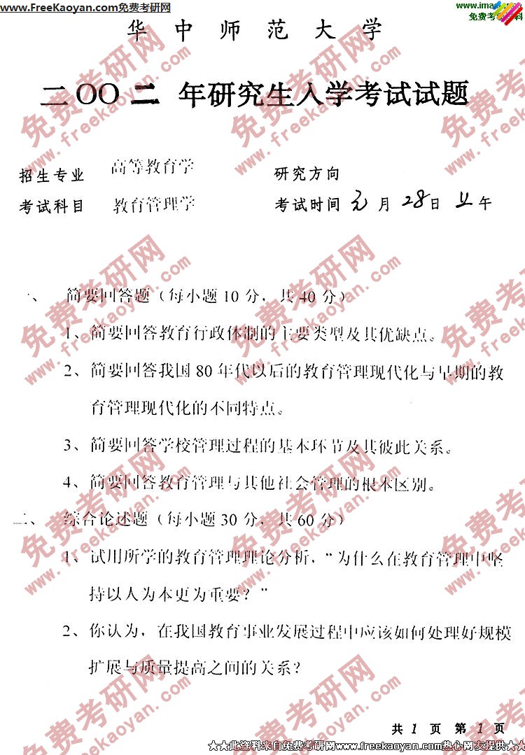专业课考研经验 本站小编 FreeKaoyan 2018-01-23华中师范大学2001年考研真题-教育经济学