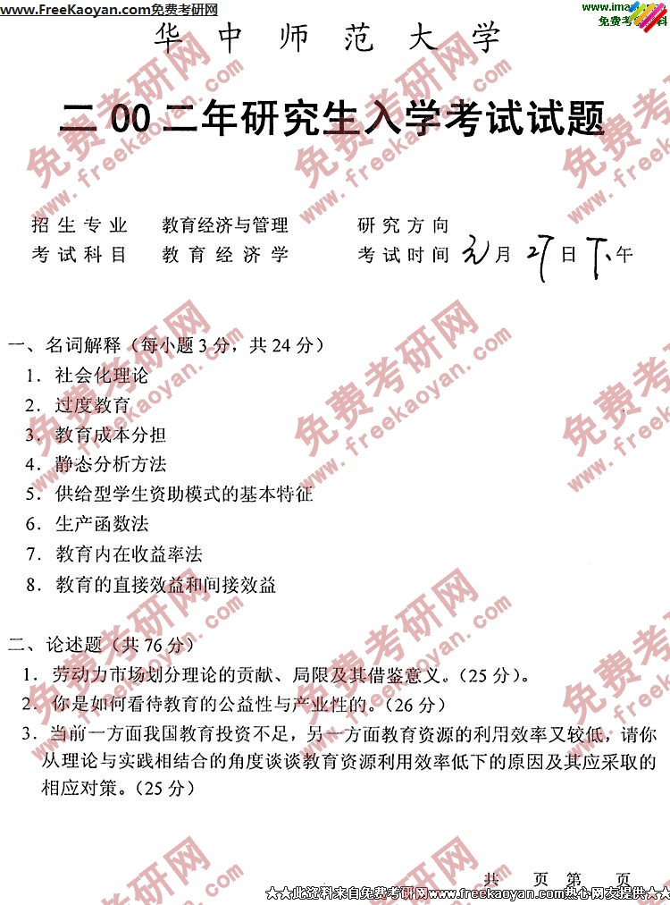 专业课考研经验 本站小编 FreeKaoyan 2018-01-23华中师范大学2001年考研真题-中外教育史