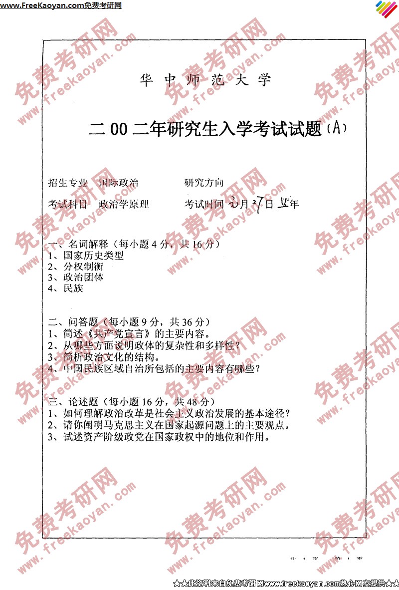 专业课考研经验 本站小编 FreeKaoyan 2018-01-23华中师范大学2001年考研真题-政治学原理