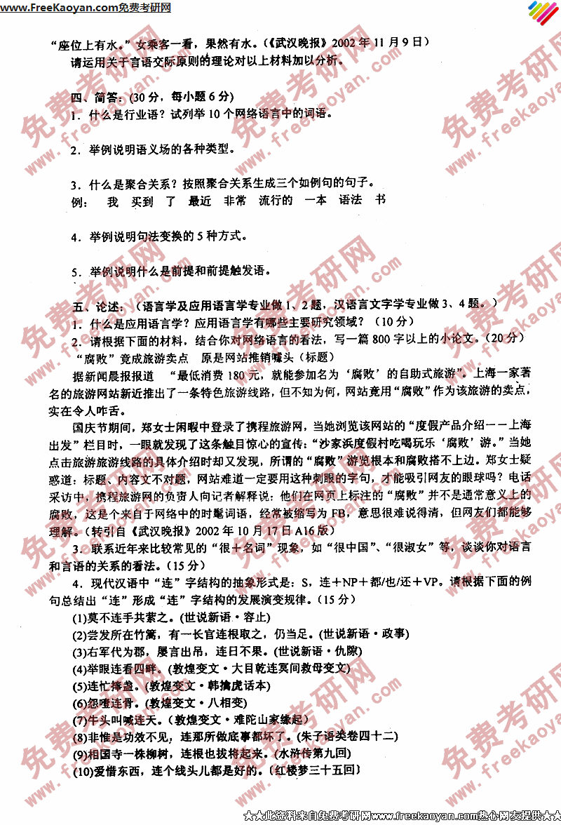 相关话题/考研真题 华中师范大学 语言 语言学及应用语言学