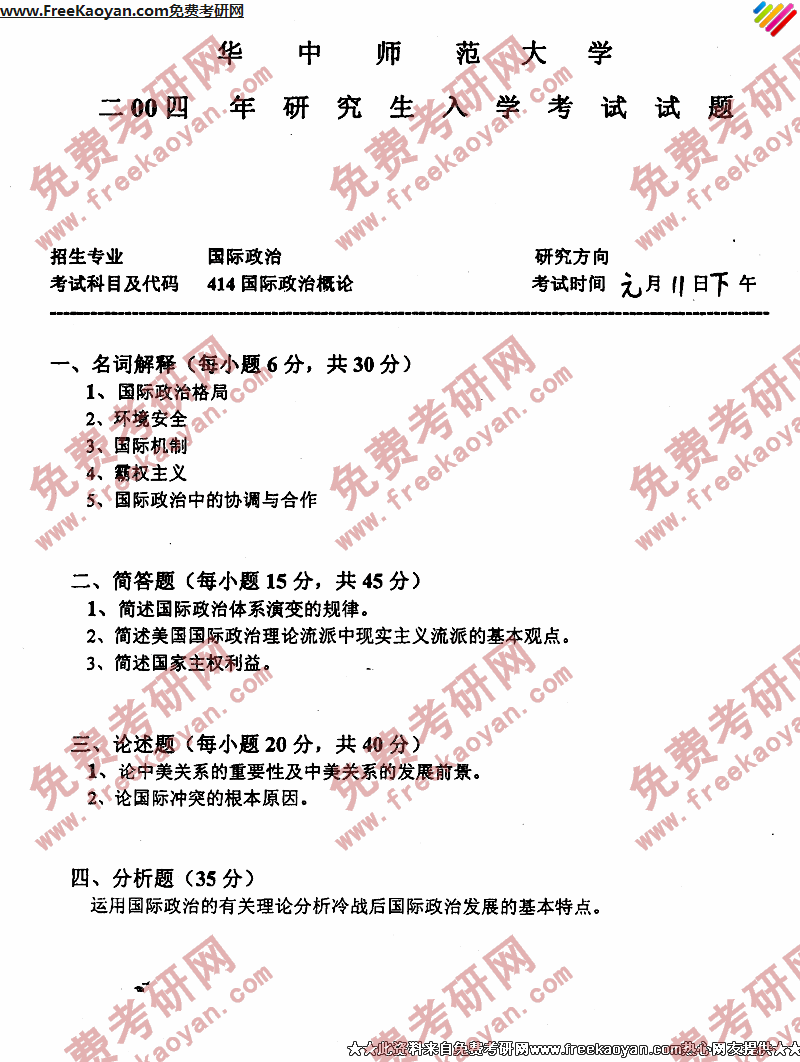 专业课考研经验 本站小编 FreeKaoyan 2018-01-23华中师范大学2003年考研真题-国际政治学概论