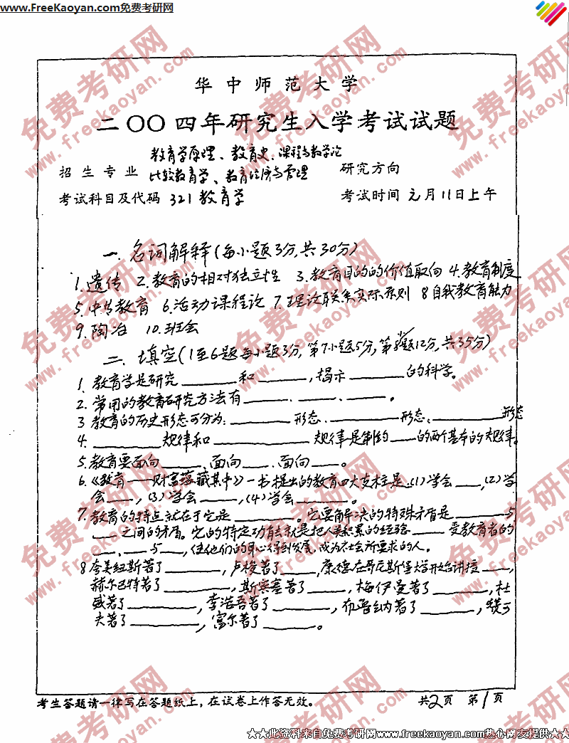 专业课考研经验 本站小编 FreeKaoyan 2018-01-23华中师范大学2002年考研真题-教育学