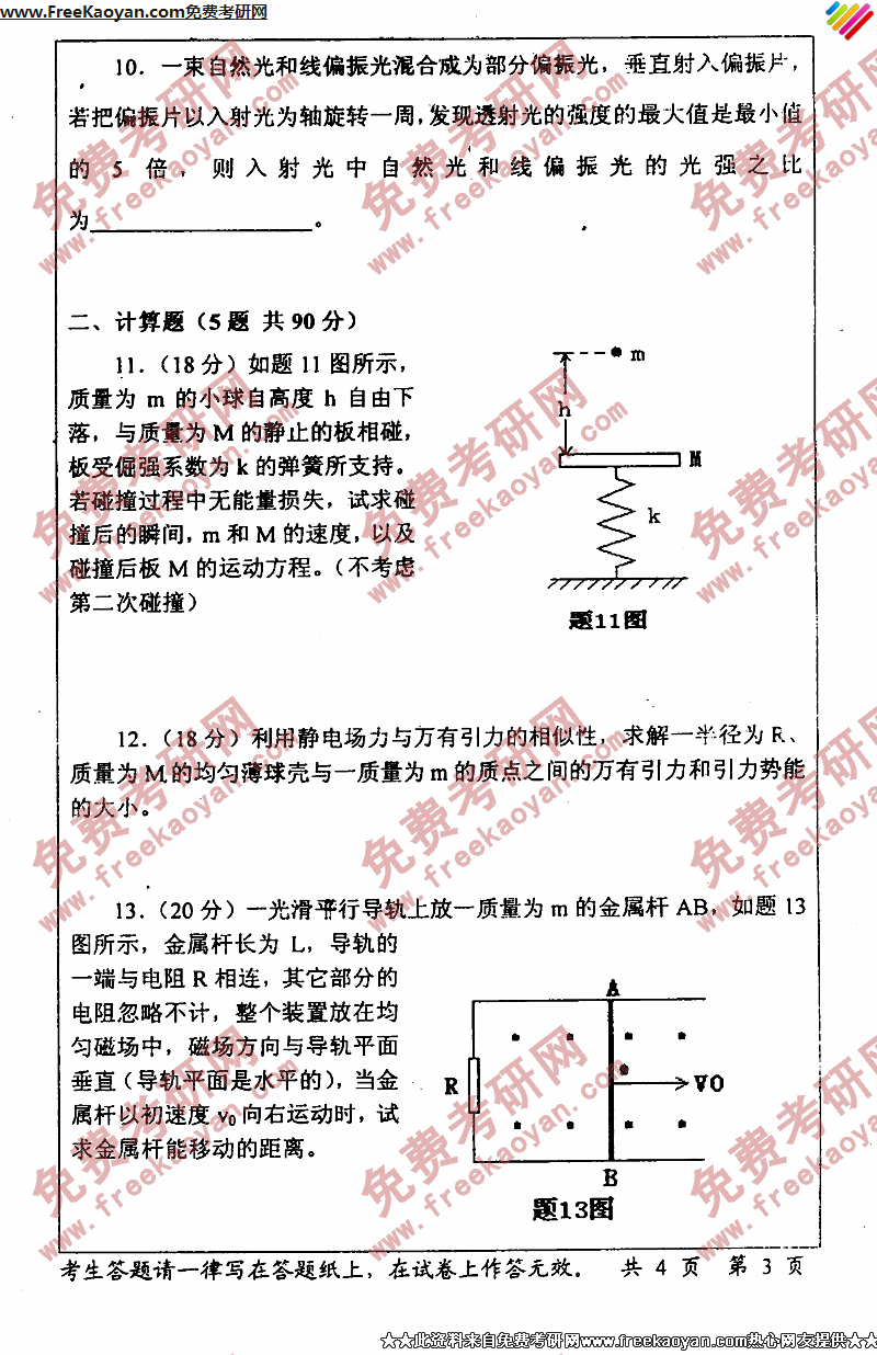 专业课考研经验 本站小编 FreeKaoyan 2018-01-23华中师范大学2004年考研真题-普通物理学(二)