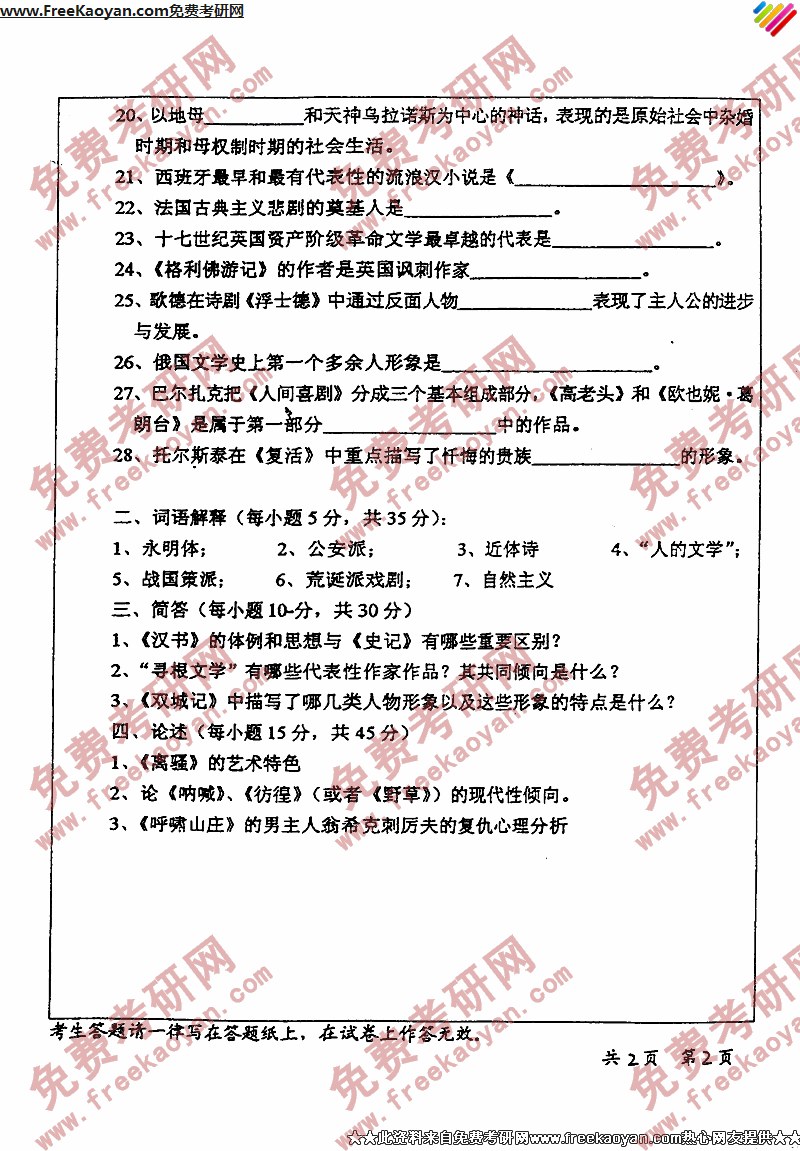 专业课考研经验 本站小编 FreeKaoyan 2018-01-23华中师范大学2003年考研真题-中国现当代文学(复试)