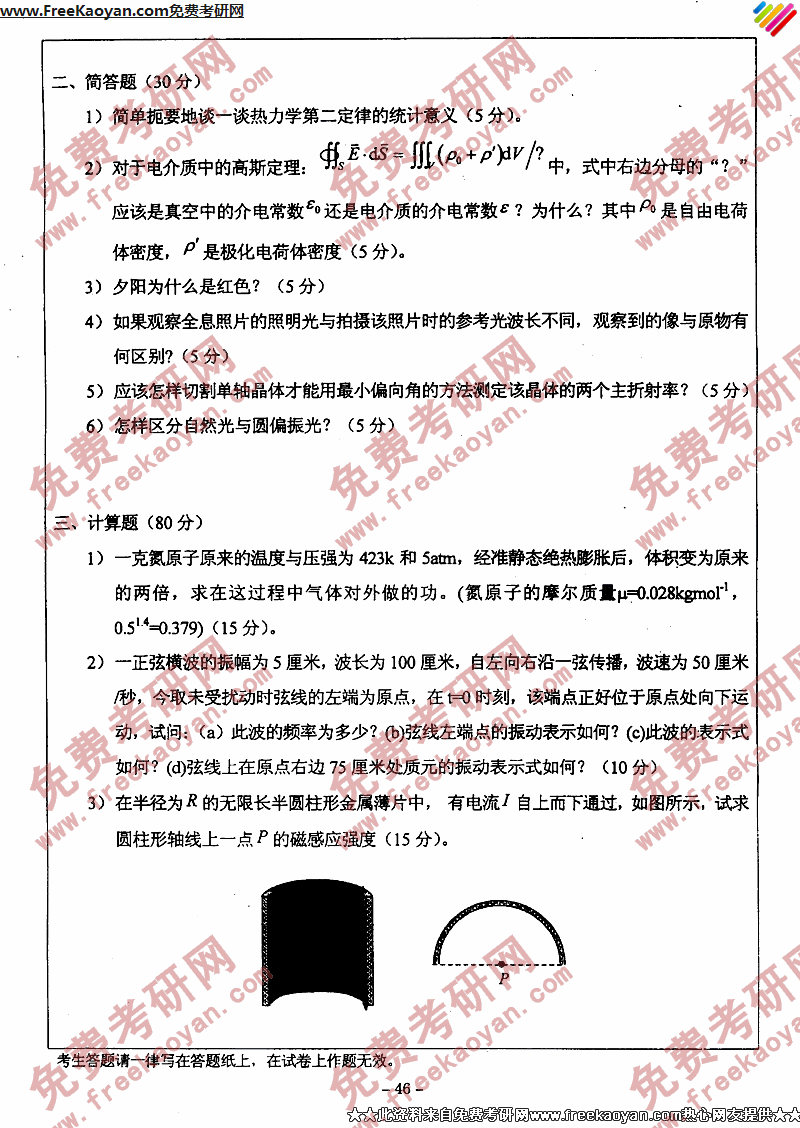 专业课考研经验 本站小编 FreeKaoyan 2018-01-23华中师范大学2004年考研真题-普通物理学(二)