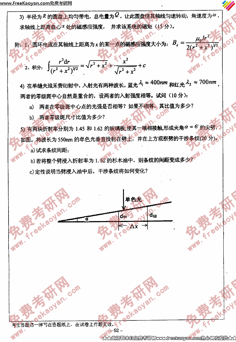 专业课考研经验 本站小编 FreeKaoyan 2018-01-23华中师范大学2004年考研真题-普通物理学(二)