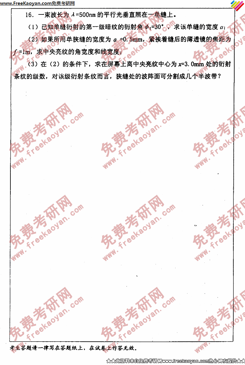 专业课考研经验 本站小编 FreeKaoyan 2018-01-23华中师范大学2005年考研真题-普通物理学(二)