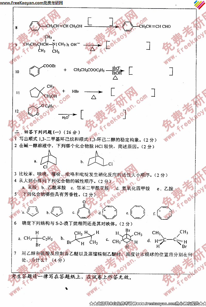 专业课考研经验 本站小编 FreeKaoyan 2018-01-23华中师范大学2004年考研真题-有机化学