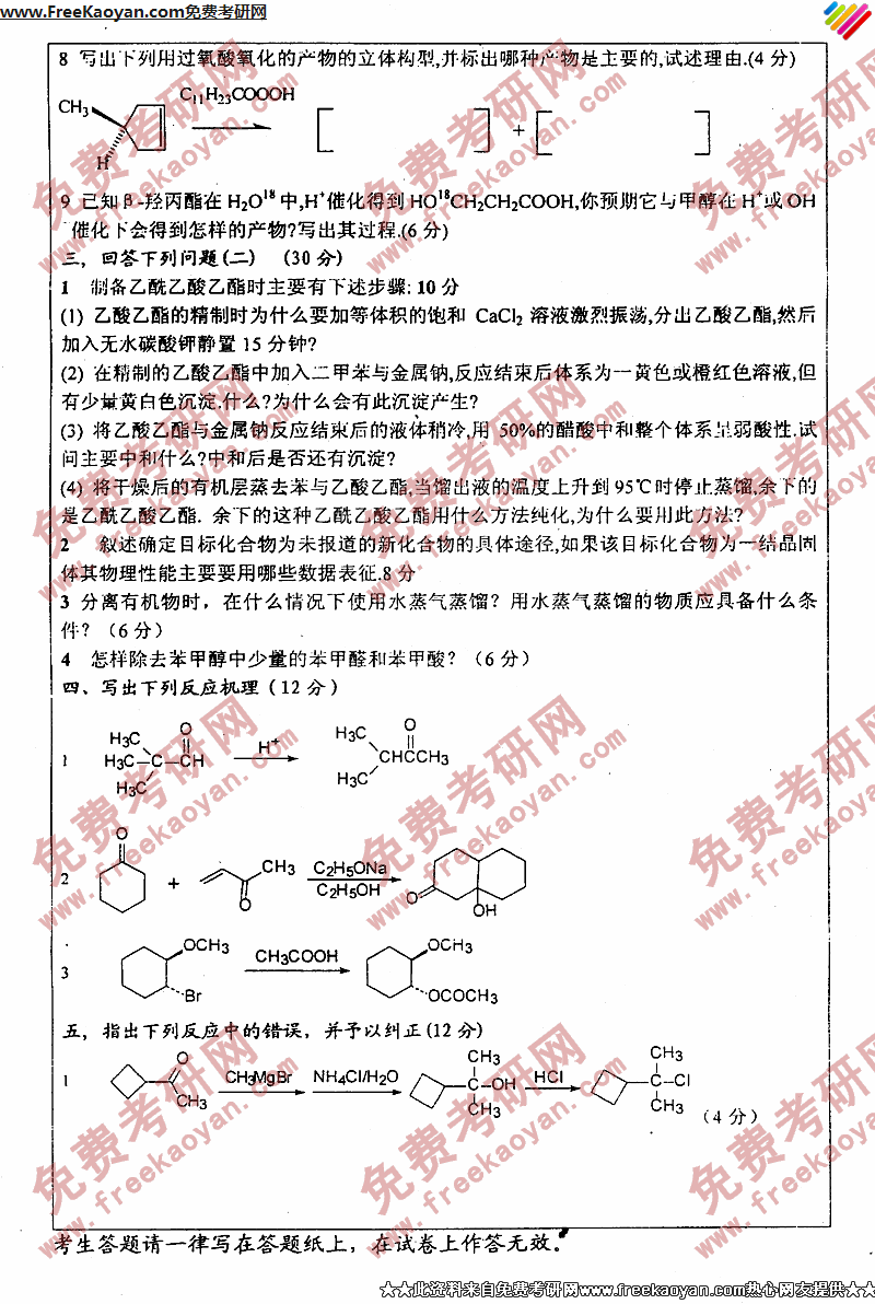 专业课考研经验 本站小编 FreeKaoyan 2018-01-23华中师范大学2004年考研真题-有机化学