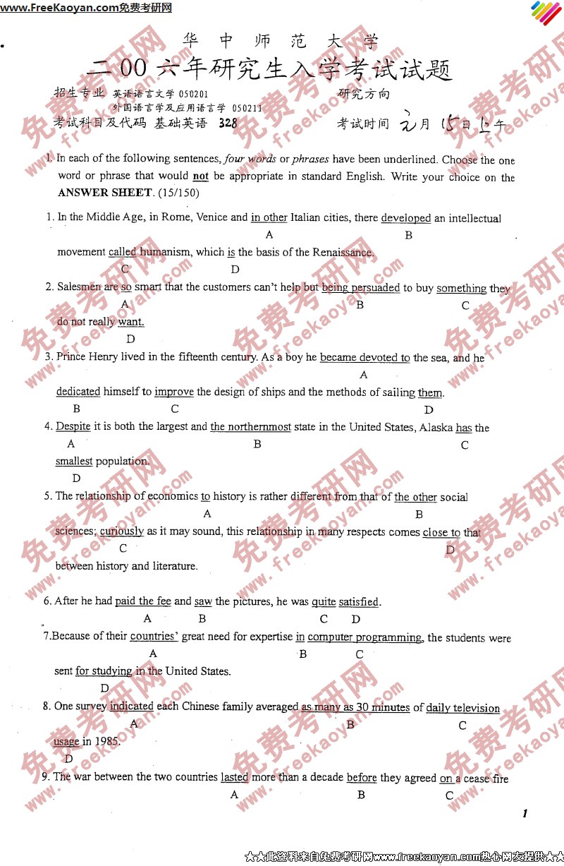 专业课考研经验 本站小编 FreeKaoyan 2018-01-23华中师范大学2006年考研真题-二外日语