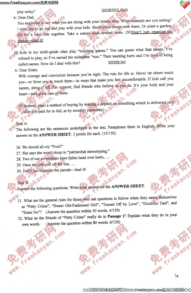 华中师范大学2006年考研真题-基础英语(16)