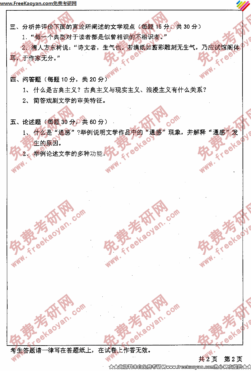 专业课考研经验 本站小编 FreeKaoyan 2018-01-23华中师范大学2005年考研真题-文学理论