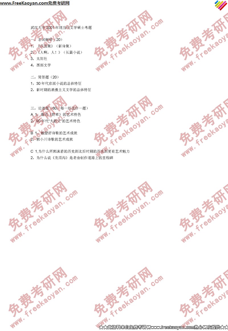 专业课考研经验 本站小编 FreeKaoyan 2018-01-23华中师范大学2003年硕士研究生入学专业考试试题(复试)招生专业:中国古代文学 考试科目:中国古代文学 考试时间:2003-5-28 (一)论“永明体”的艺术特征及其在文学史的地位(50分) (二)论《窦娥冤》中窦娥的艺术形象(50分) ...