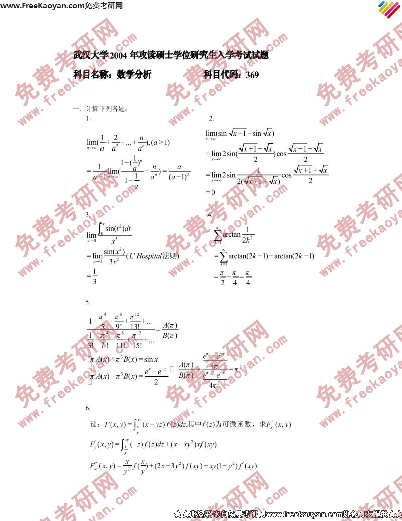 专业课考研经验 本站小编 FreeKaoyan 2018-01-23武汉大学2004年考研真题-地籍测量学