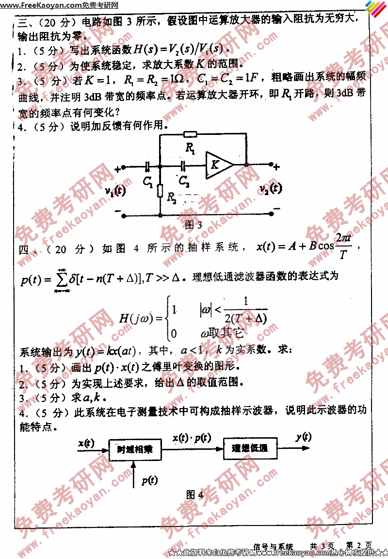 专业课考研经验 本站小编 FreeKaoyan 2018-01-23武汉大学2003年考研真题-信号与系统