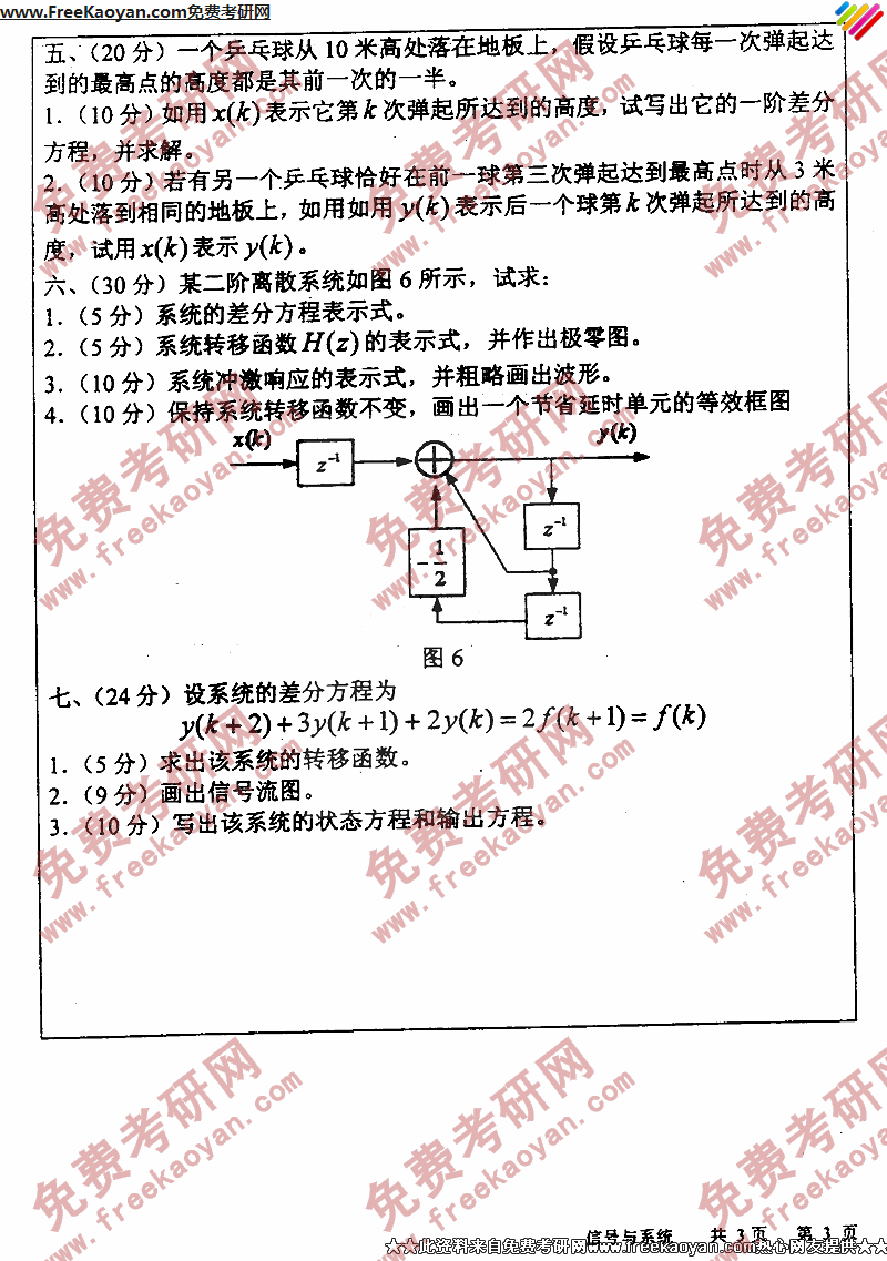 专业课考研经验 本站小编 FreeKaoyan 2018-01-23武汉大学2003年考研真题-信号与系统
