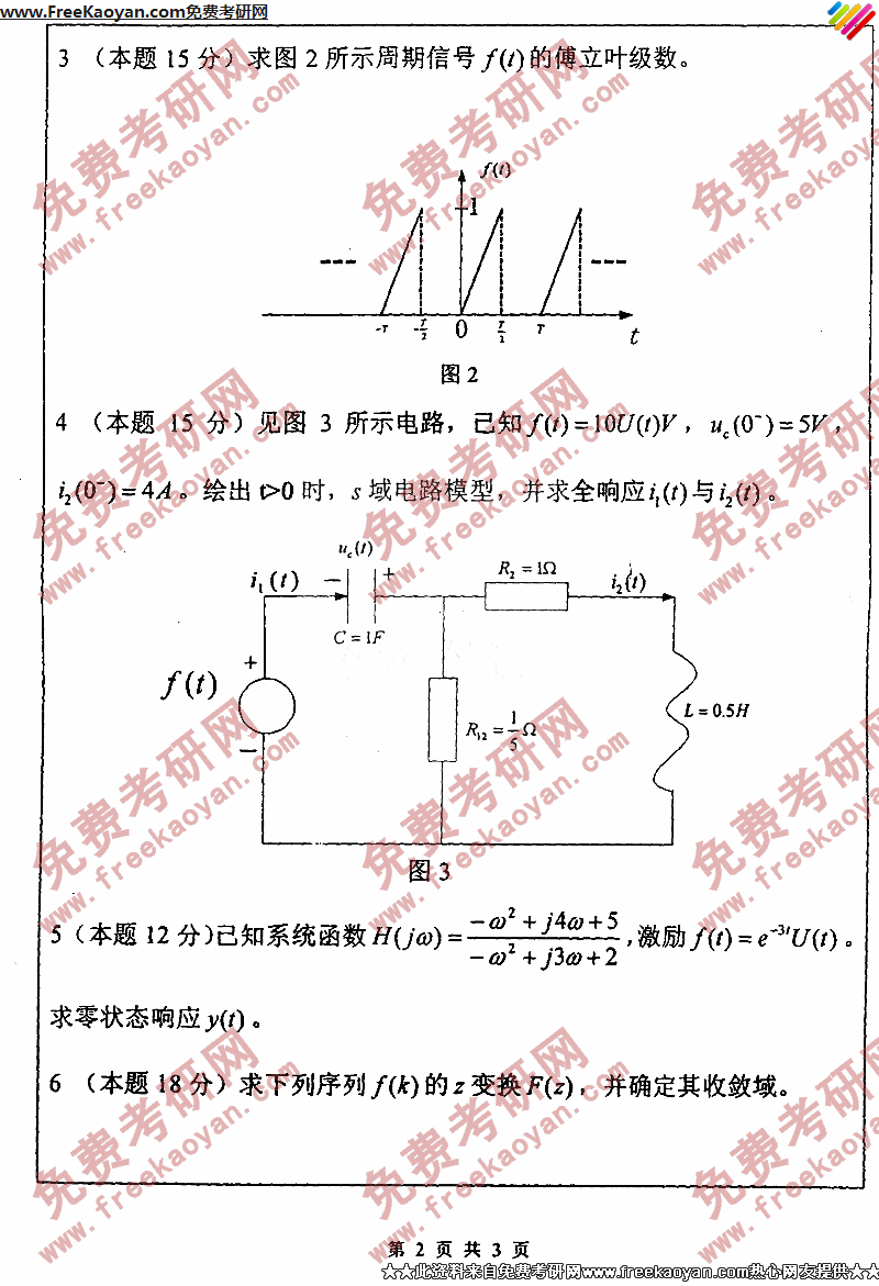 专业课考研经验 本站小编 FreeKaoyan 2018-01-23武汉大学2003年考研真题-信号与系统