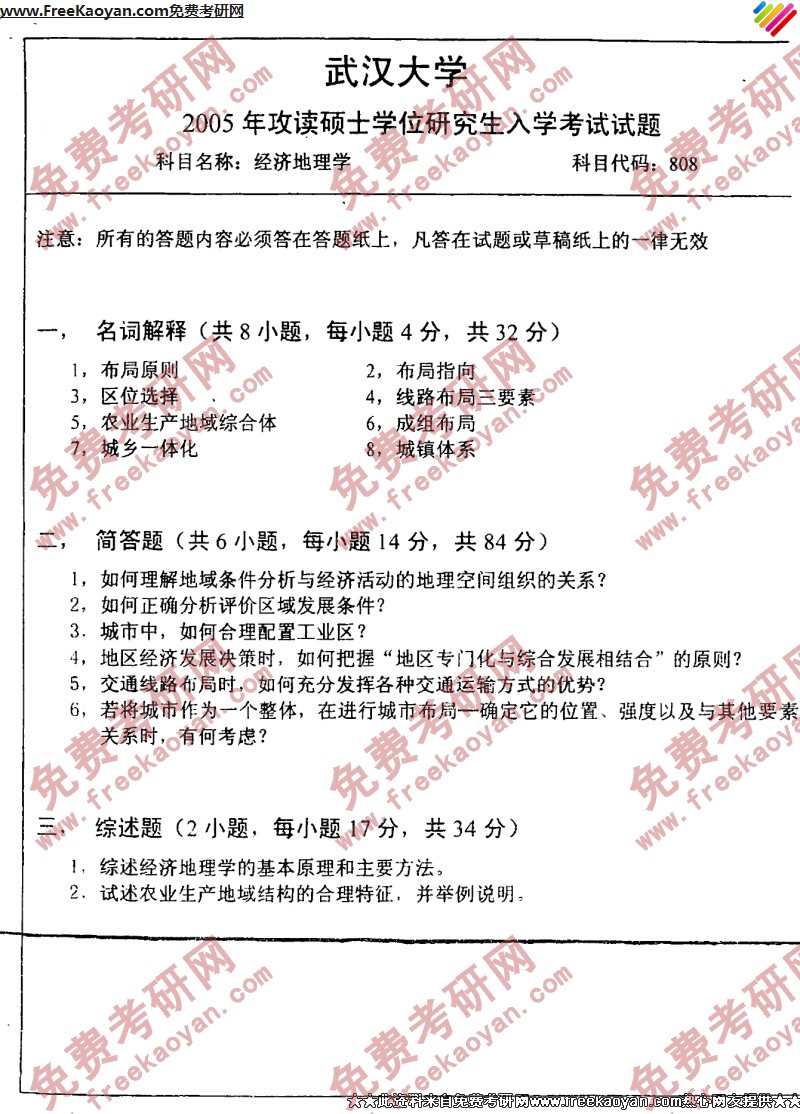 专业课考研经验 本站小编 FreeKaoyan 2018-01-23武汉大学2004年考研真题-经济地理学