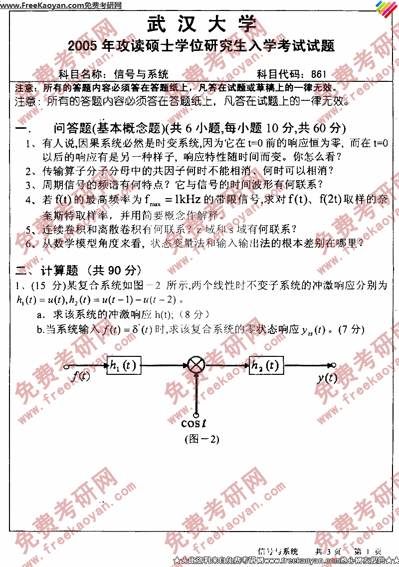 专业课考研经验 本站小编 FreeKaoyan 2018-01-23武汉大学2004年考研真题-信号与系统(887)