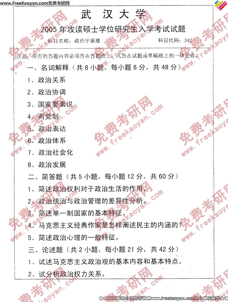 专业课考研经验 本站小编 FreeKaoyan 2018-01-23武汉大学2004年考研真题-政治学原理