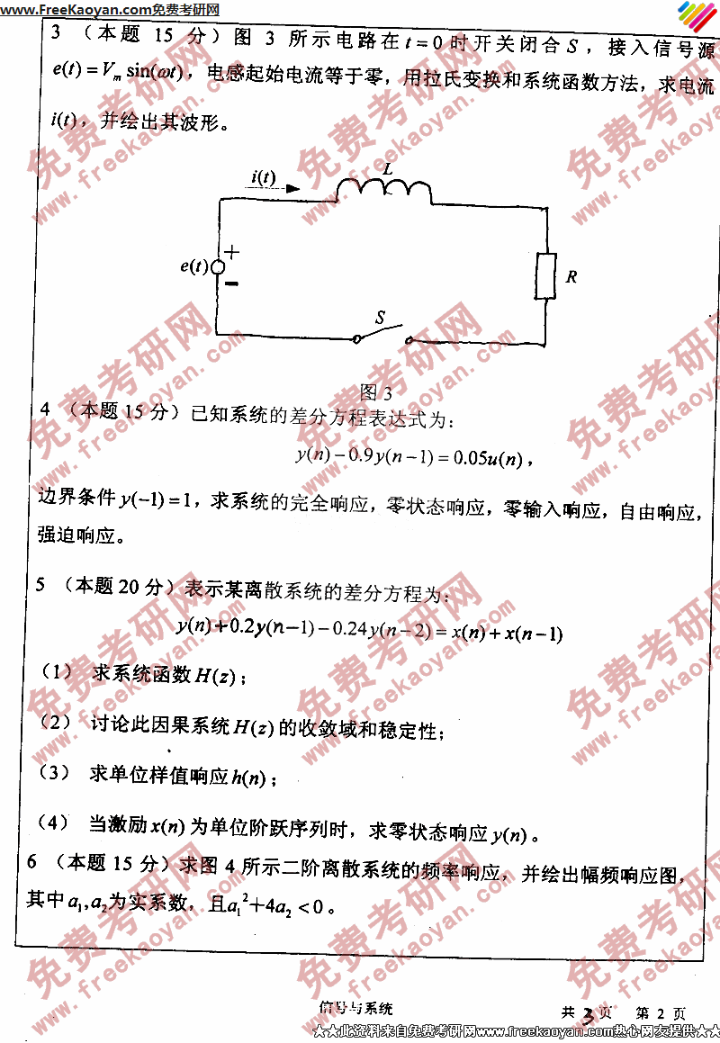 专业课考研经验 本站小编 FreeKaoyan 2018-01-23武汉大学2005年考研真题-信号与系统