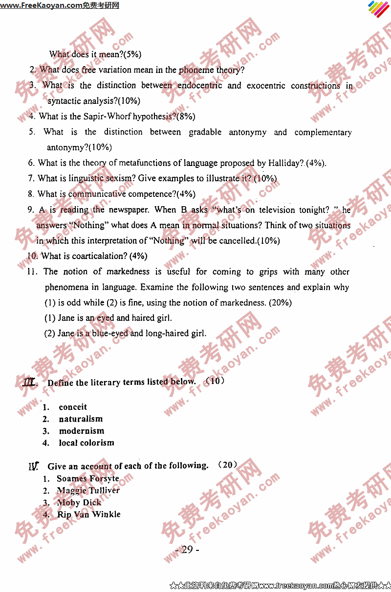 相关话题/考研真题 武汉理工大学 英美文学 语言学
