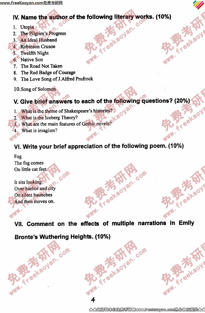 武汉理工大学2005年考研真题-语言学及英美文学(4)