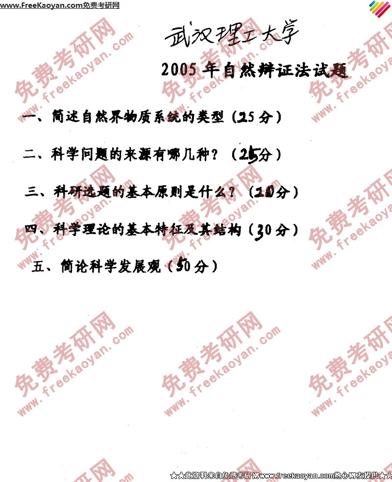专业课考研经验 本站小编 FreeKaoyan 2018-01-23武汉理工大学2005年考研真题-科学技术史