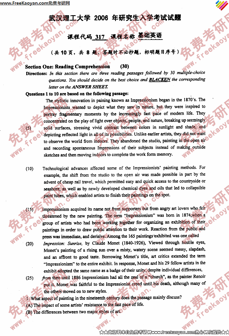 专业课考研经验 本站小编 FreeKaoyan 2018-01-23武汉理工大学2005年考研真题-语言学及英美文学