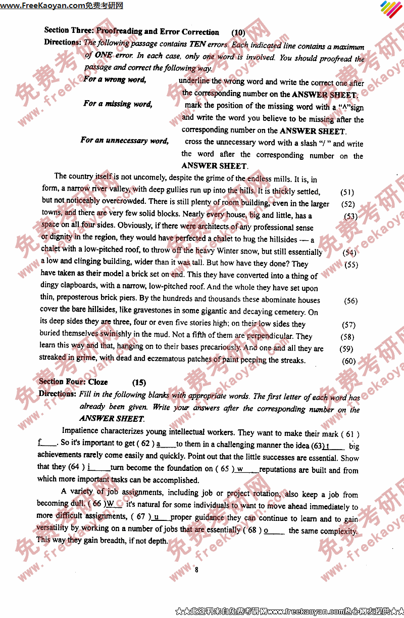 武汉理工大学2006年考研真题-基础英语(8)