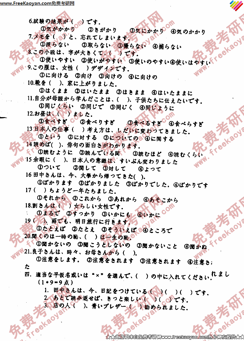 专业课考研经验 本站小编 FreeKaoyan 2018-01-23武汉理工大学2005年考研真题-日语(二外)