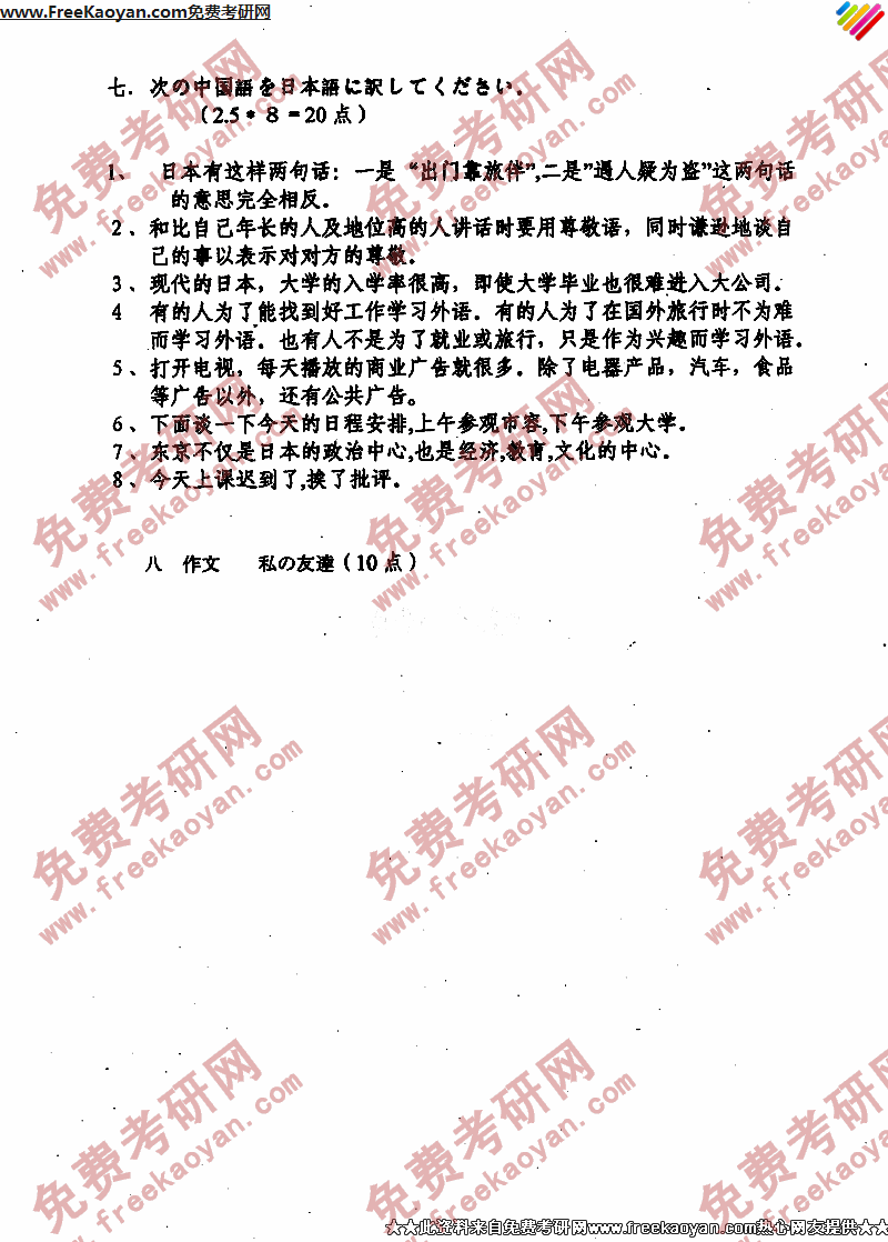 专业课考研经验 本站小编 FreeKaoyan 2018-01-23武汉理工大学2005年考研真题-日语(二外)