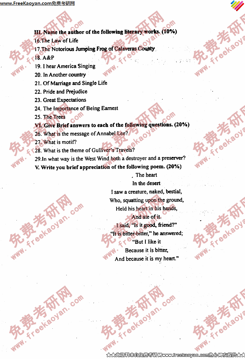 专业课考研经验 本站小编 FreeKaoyan 2018-01-23武汉理工大学2005年考研真题-语言学及英美文学