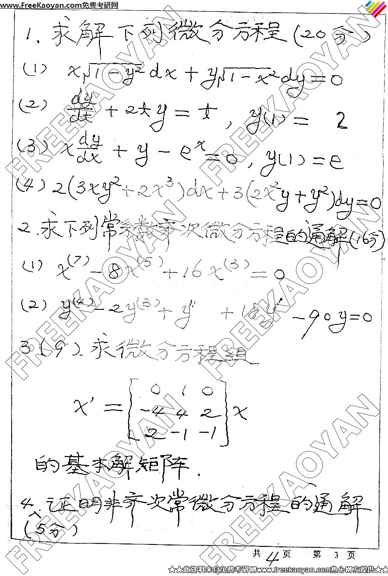 东北大学2004年考研真题-高等代数与常微分方程(A)(3)
