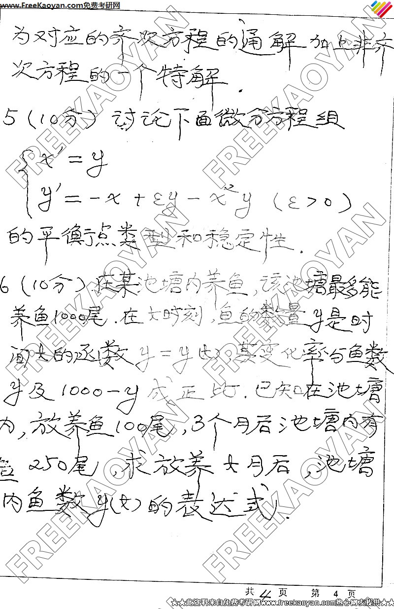 东北大学2004年考研真题-高等代数与常微分方程(A)(4)
