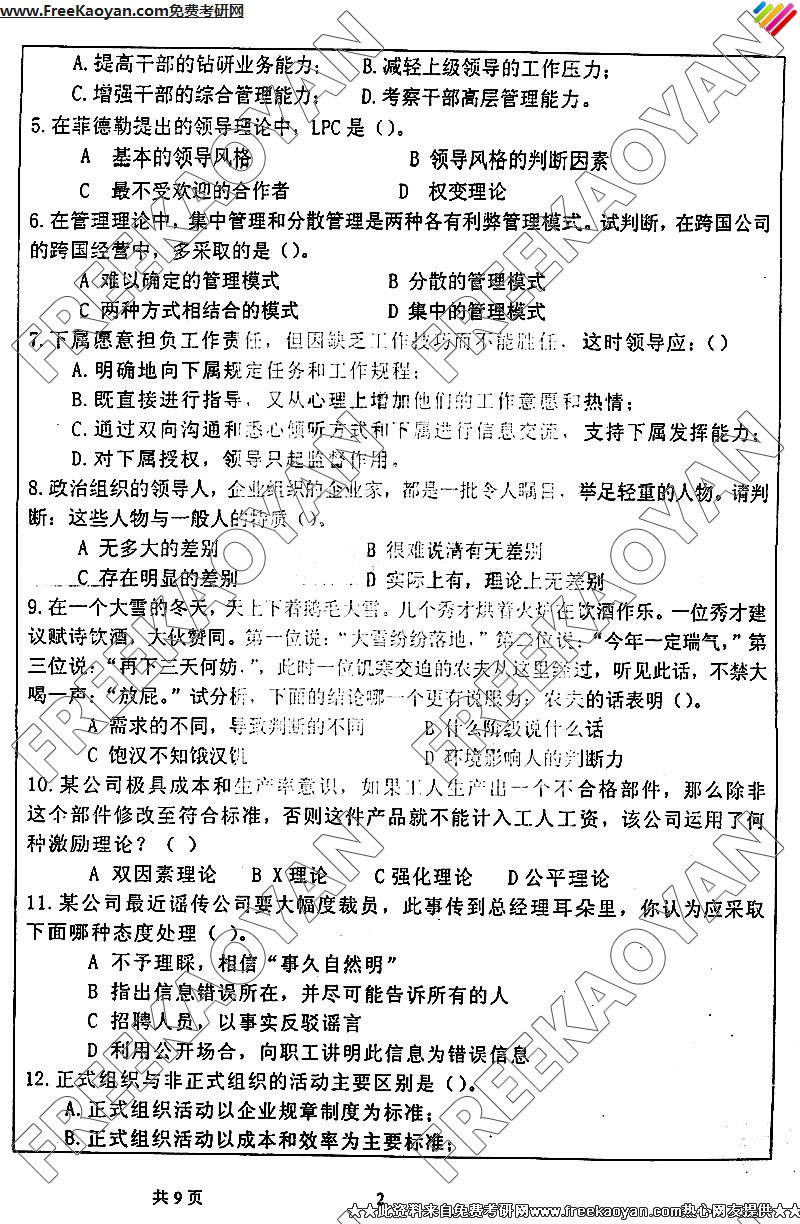 • 武汉理工大学2003年考研真题-管理学原理复试