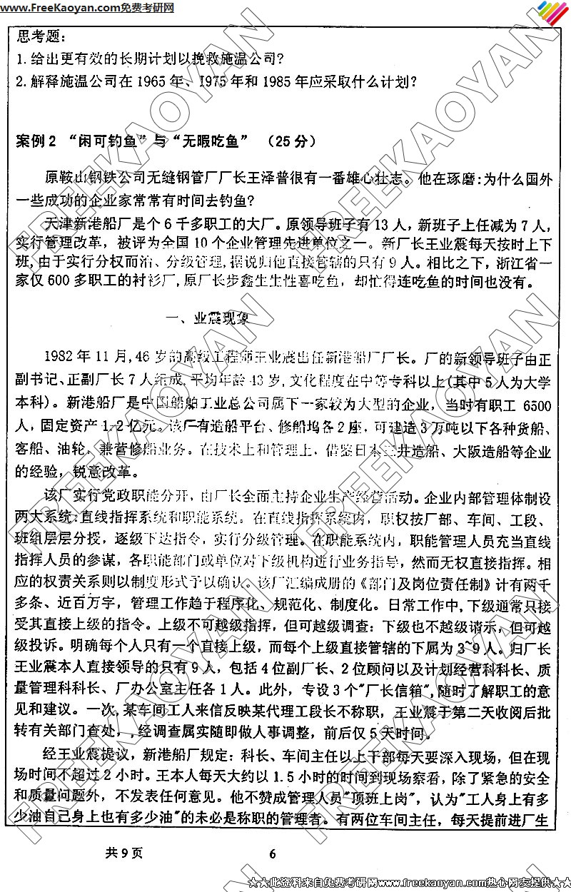 专业课考研经验 本站小编 FreeKaoyan 2018-01-23武汉理工大学2003年企业管理概论复试试卷复试科目 : 企业管理概论 复试专业 : 管理科学与工程 姓 名 准考号 成 绩 说明:本复试试卷分为A、B两卷,报考信息管理与信息系统方向的考生请选择B卷,其他考生请选择A卷。A卷(共4题,其中第1题25分、第2题20分、第3题25分、第4题30分,共计1 ...