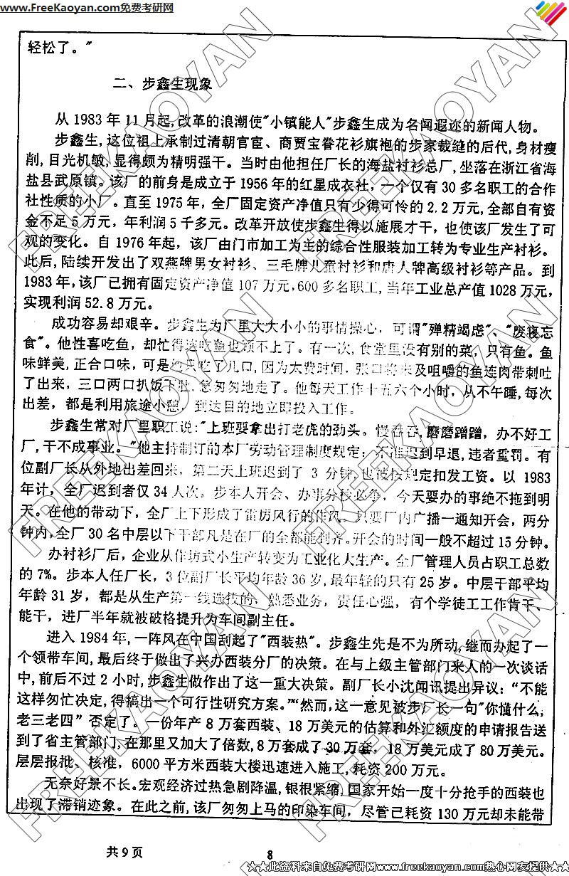 • 武汉理工大学2003年考研真题-企业管理概论复试