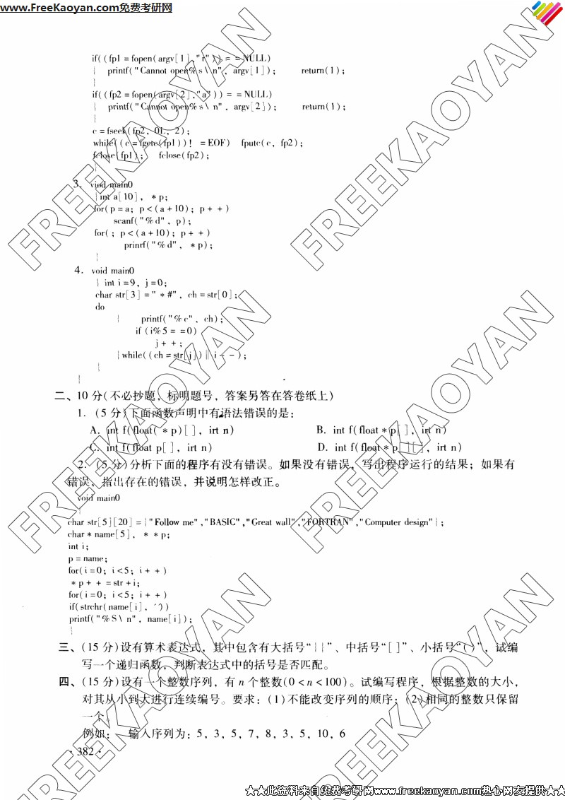 东北大学2004年考研真题-C语言程序设计与数据结构(2)
