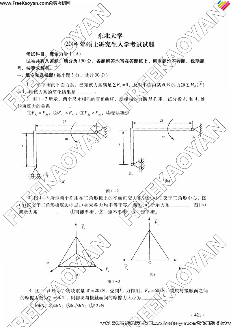 专业课考研经验 本站小编 FreeKaoyan 2018-01-23东北大学2004年考研真题-结构力学