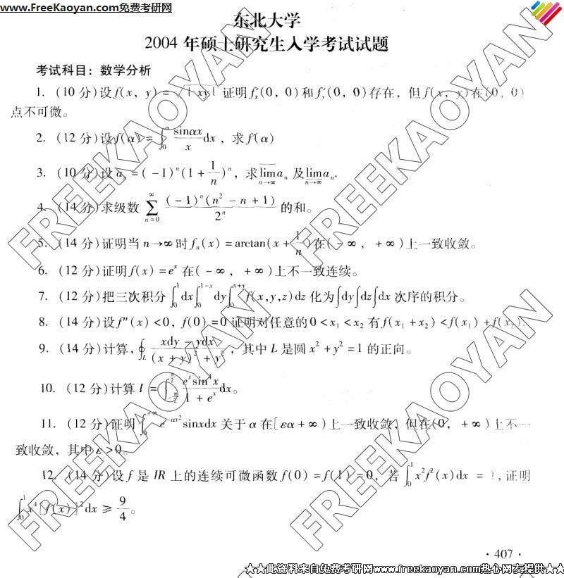 专业课考研经验 本站小编 FreeKaoyan 2018-01-23东北大学2004年考研真题-高等代数与常微分方程A