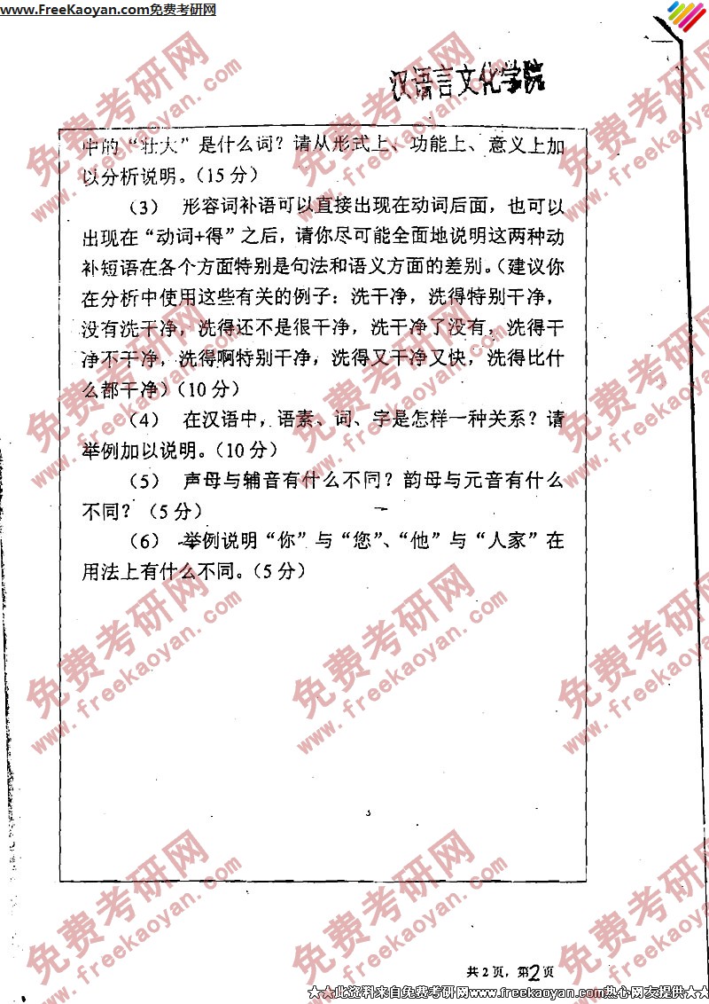 相关话题/南开大学 考研真题 现代汉语