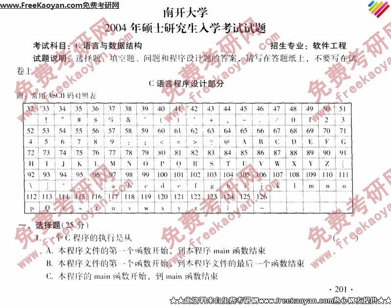 南开大学2004年考研真题-C语言与数据结构