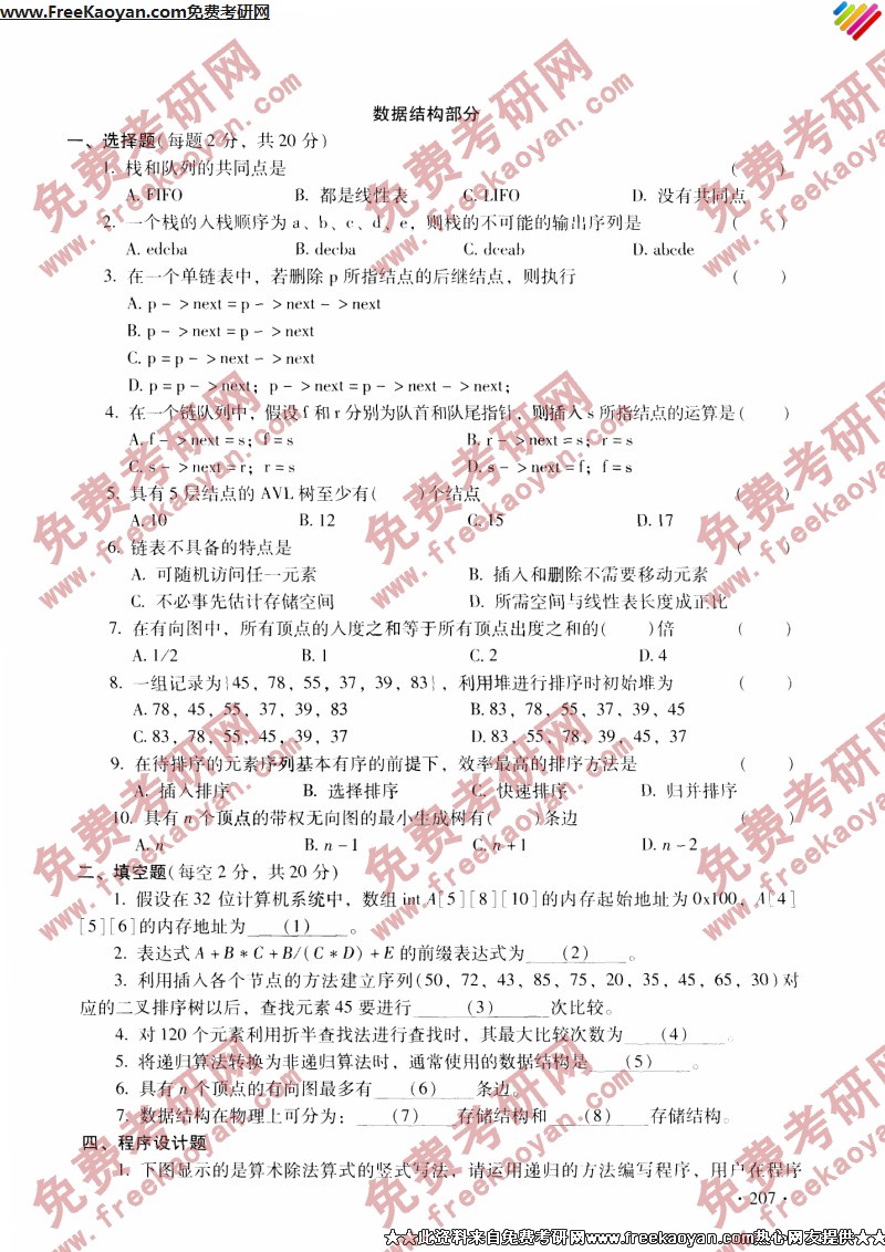 南开大学2004年考研真题-C语言与数据结构(7)