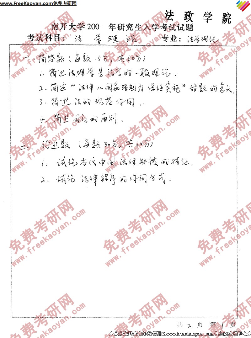 相关话题/考研真题 法学 南开大学 理论