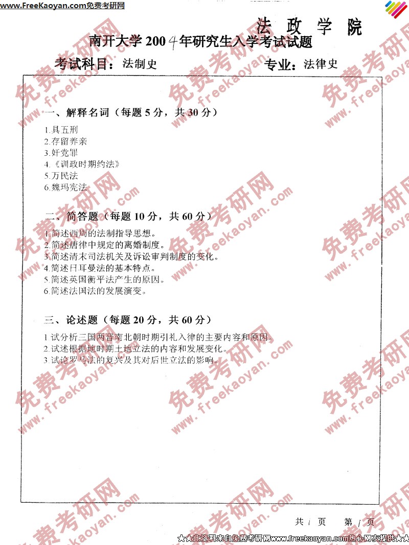专业课考研经验 本站小编 FreeKaoyan 2018-01-23南开大学2004年考研真题-法学理论