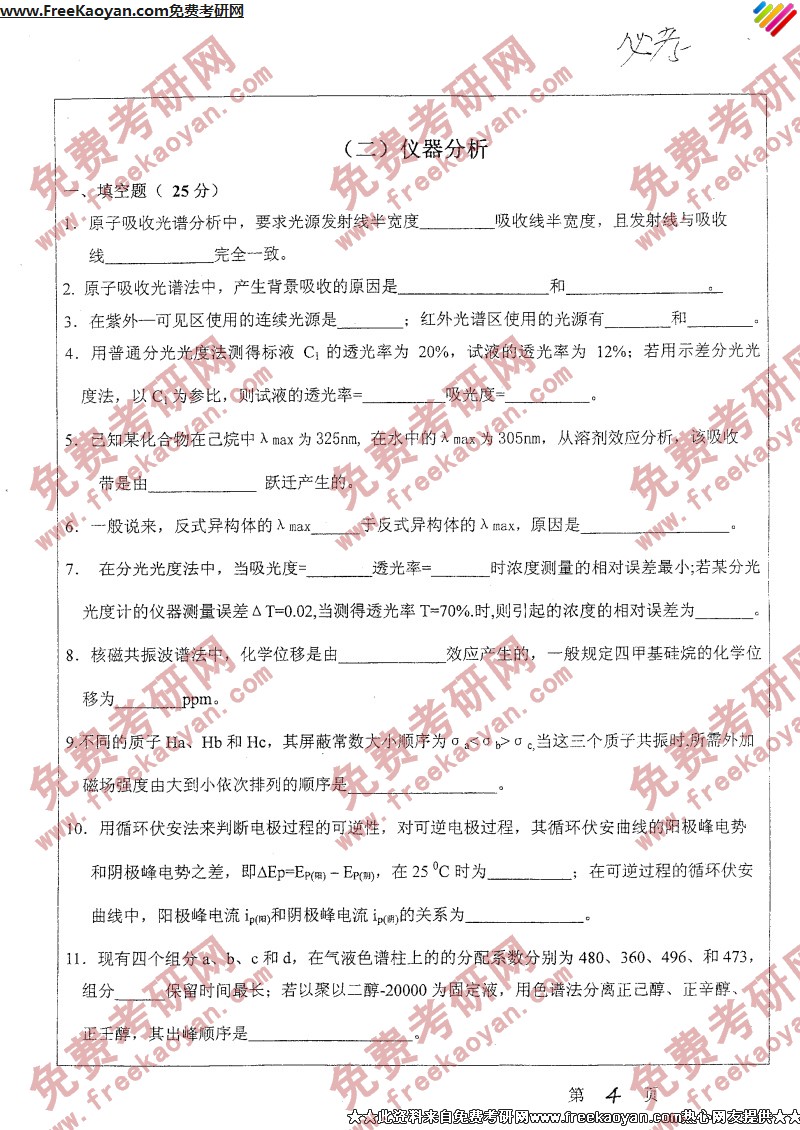 专业课考研经验 本站小编 FreeKaoyan 2018-01-23东北大学2004年考研真题-物理化学
