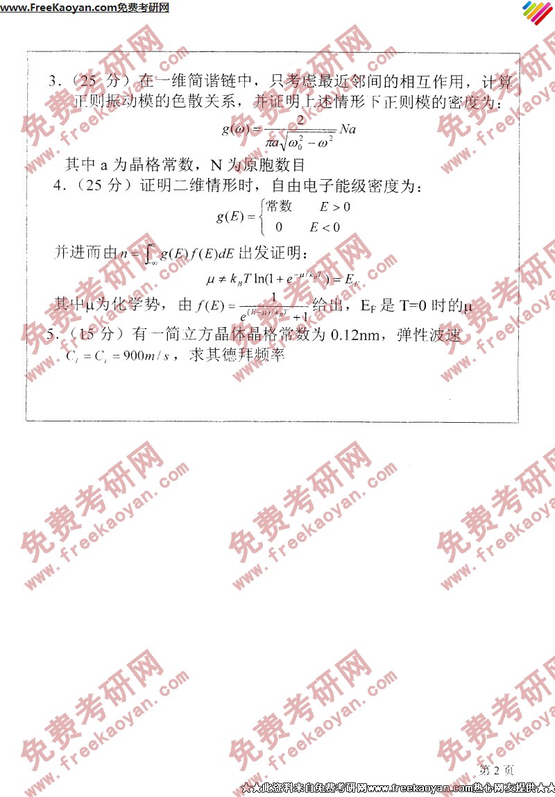 南开大学2004年考研真题-固体物理(基础部分)(2)