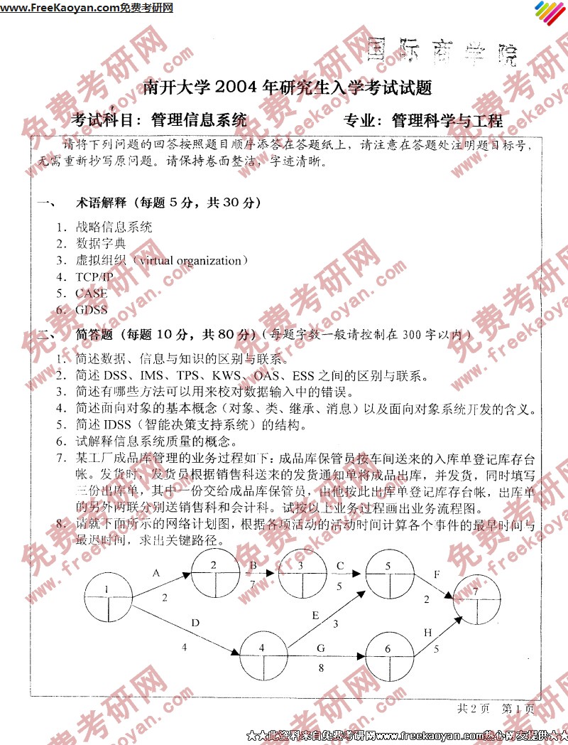 专业课考研经验 本站小编 FreeKaoyan 2018-01-23南开大学2004年考研真题-高等教育管理