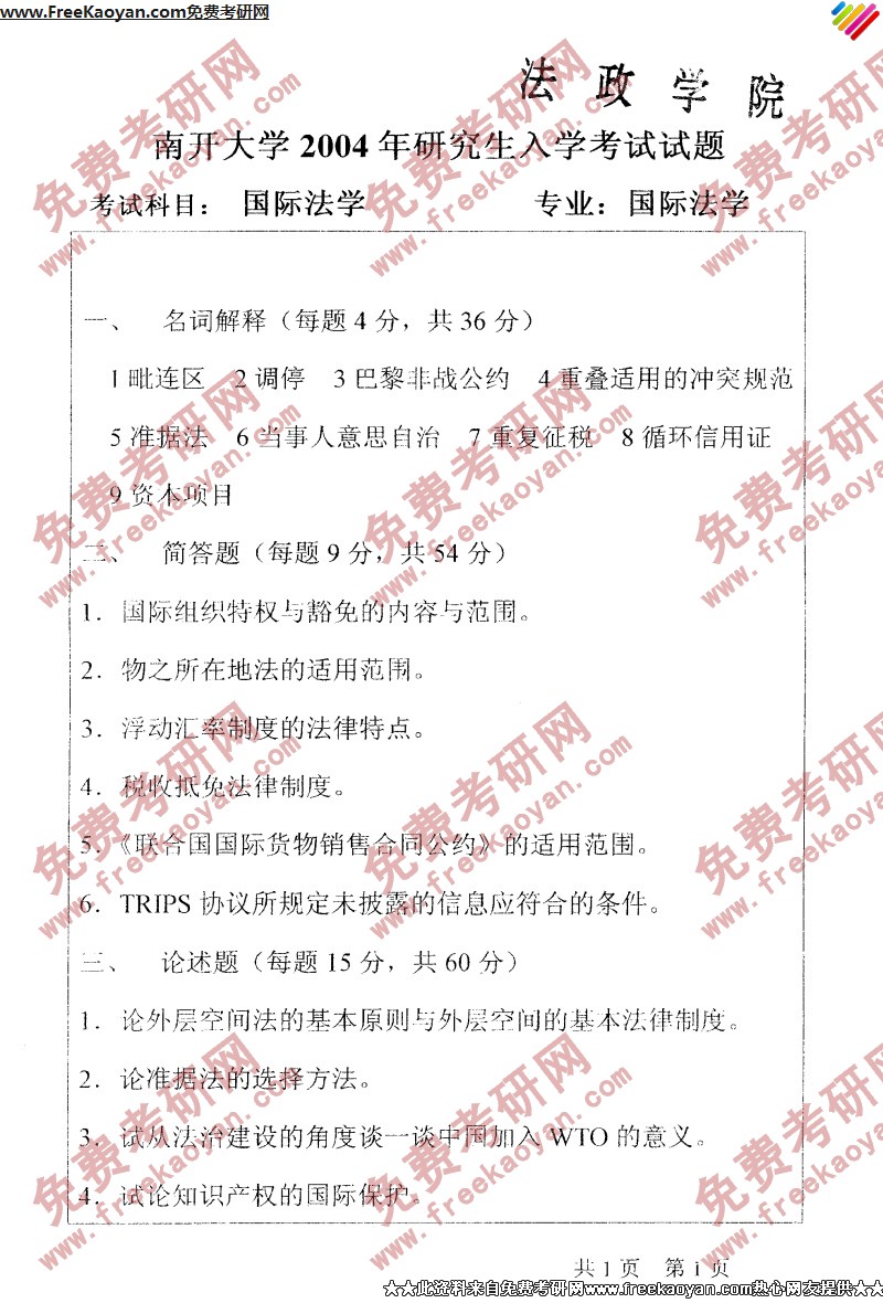 相关话题/南开大学 考研真题 国际法学